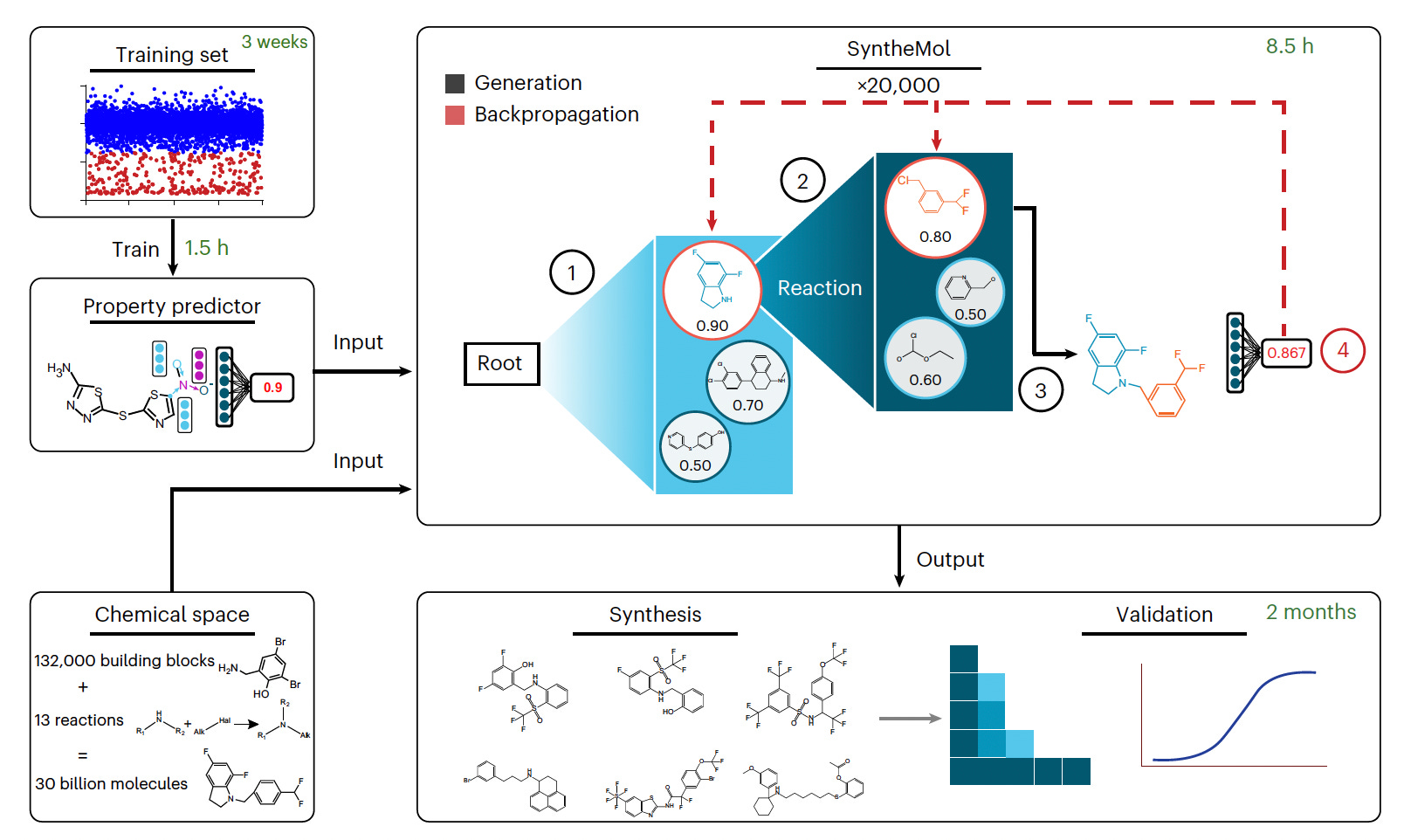 SyntheMol was built specifically to design small molecules that are easily (and cheaply) synthesized. From EnamineLtd 30 billion molecules, about 13,500 were screened, 58 promising candidates were synthesized, and 6 were highly potent against A. baumannii.