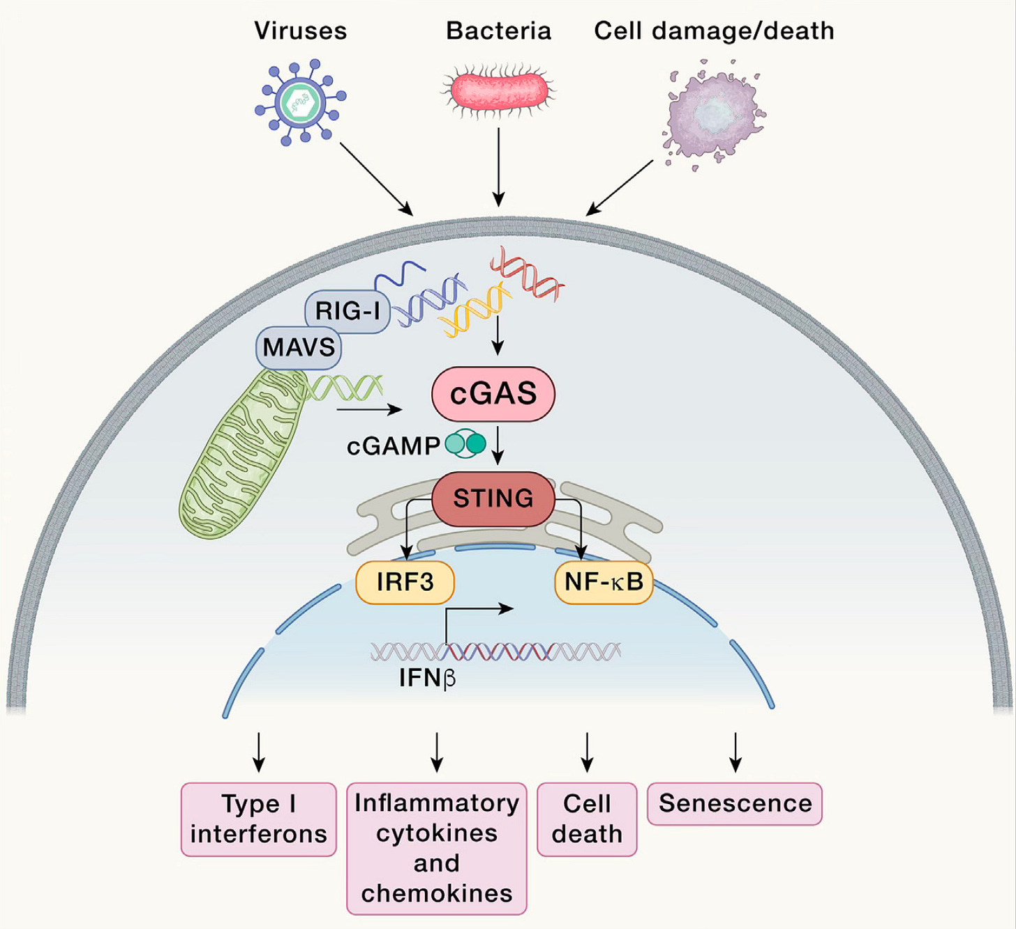 You can also see this pathway’s role in promoting inflammation, cell senescence, and death. Since the discovery in 2012, the cGAS-STING pathway has been implicated in many autoimmune and age-related inflammatory diseases, including cancer and neurodegenerative.