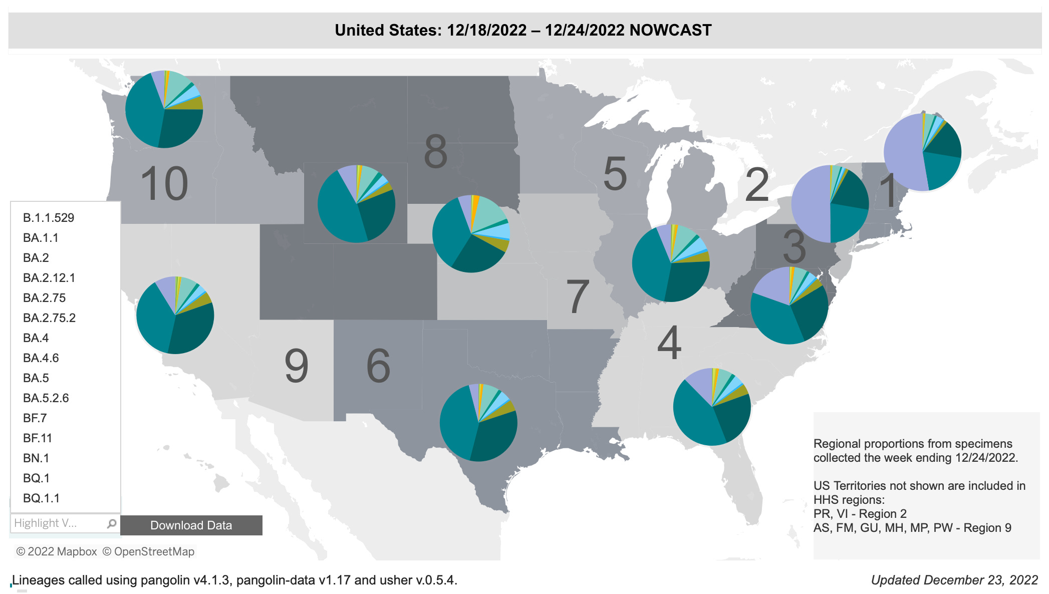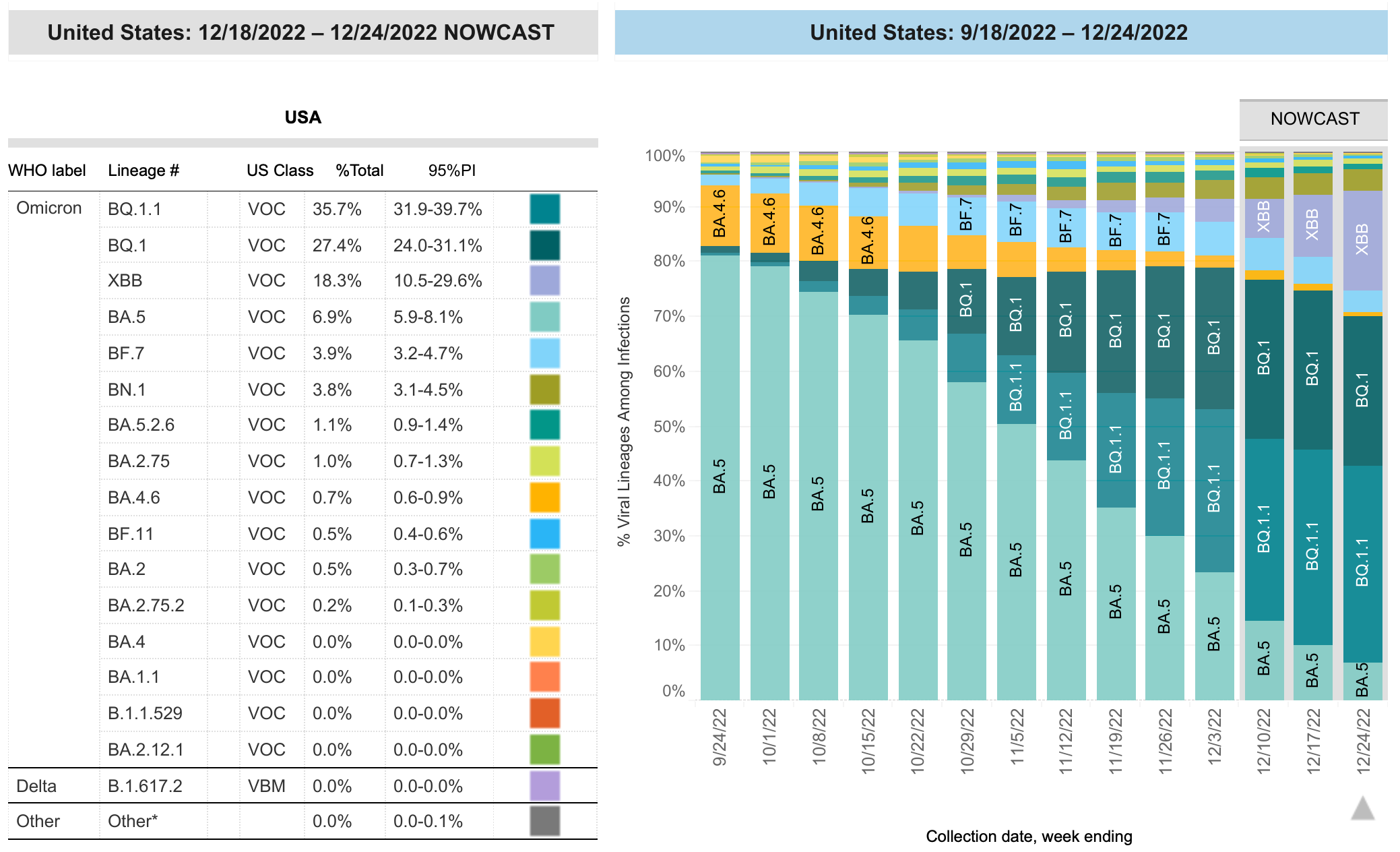 The United States is the first country to have a XBB.x (subvariant) become dominant regionally following Singapore’s XBB. Singapore had a significant wave in October