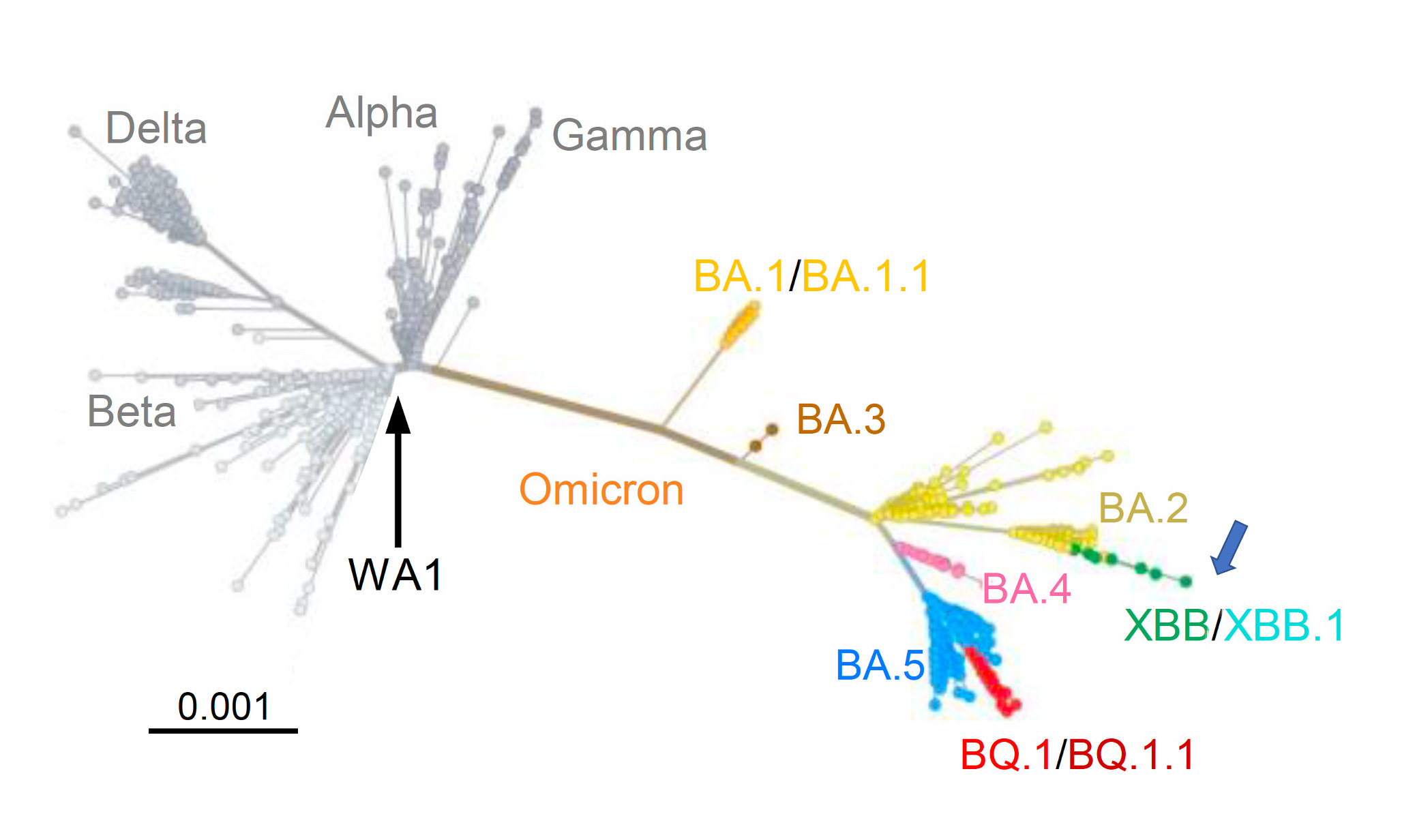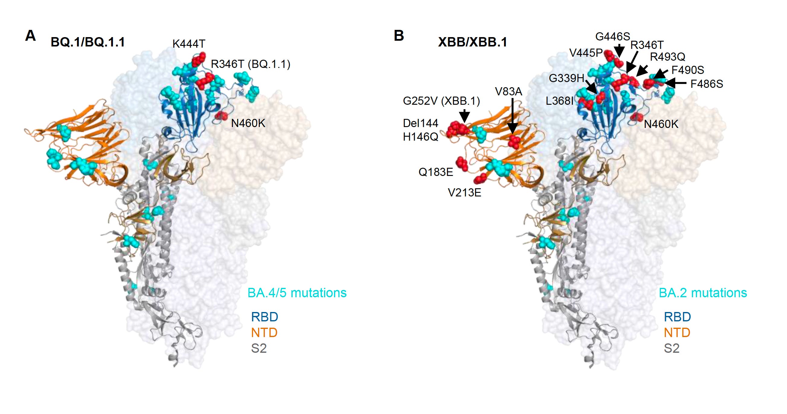 As everyone who has been following the Omicron family of SARS-CoV-2 descendants in recent months, there’s a swarm of new subvariants. One of these is XBB, which is a recombinant (fusion) of 2 different BA.2 variants, BJ.1 (BA.2.10.1.1) and BA.2.75 (BA.2.75.3.1.1.1), depicted below by both the tree and mutation map.