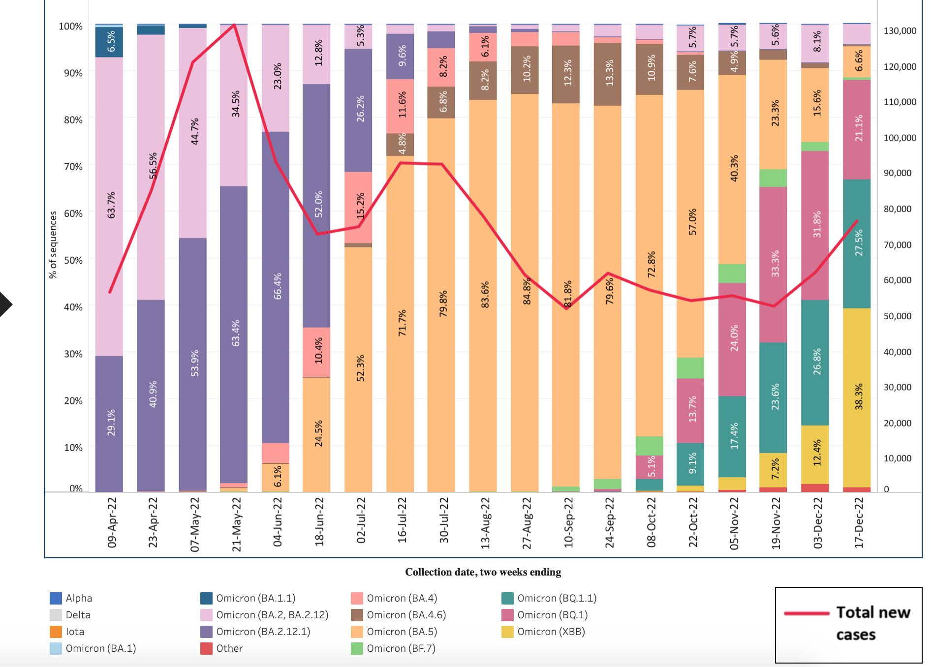 Here is the most updated variant mix in New York through December 17th showing the rise of XBB.