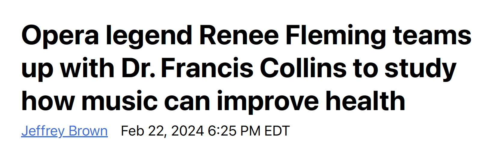 If we understood that we could probably make music therapy even more scientifically successful and maybe even get third parties to pay for it. All of this became opportunity for building a lot more visibility because of making friends withRenée Fleming, who I hadn't really known until a famous dinner party in 2015 where we both ended up singing to a trio of Supreme Court justices trying to cheer them up after a bent week. And she has become such an incredible partner in this. She's trained herself pretty significantly in neuroscience, and she's a convener and an articulate spokesperson. So over the course of that, we built a whole program called Sound Health that now has invested an additional $35 million worth NIH research to try to see how we can bring together music therapy, musician performers and neuroscientists to learn from each other, speak each other's language and see what we could learn about this particularly interesting input to the human brain that has such power on us and maybe could be harnessed to do even more good for people with chronic pain or people with PTSD, people with dementia where music seems to bring people back to life who'd otherwise seem to have disappeared into the shadows.