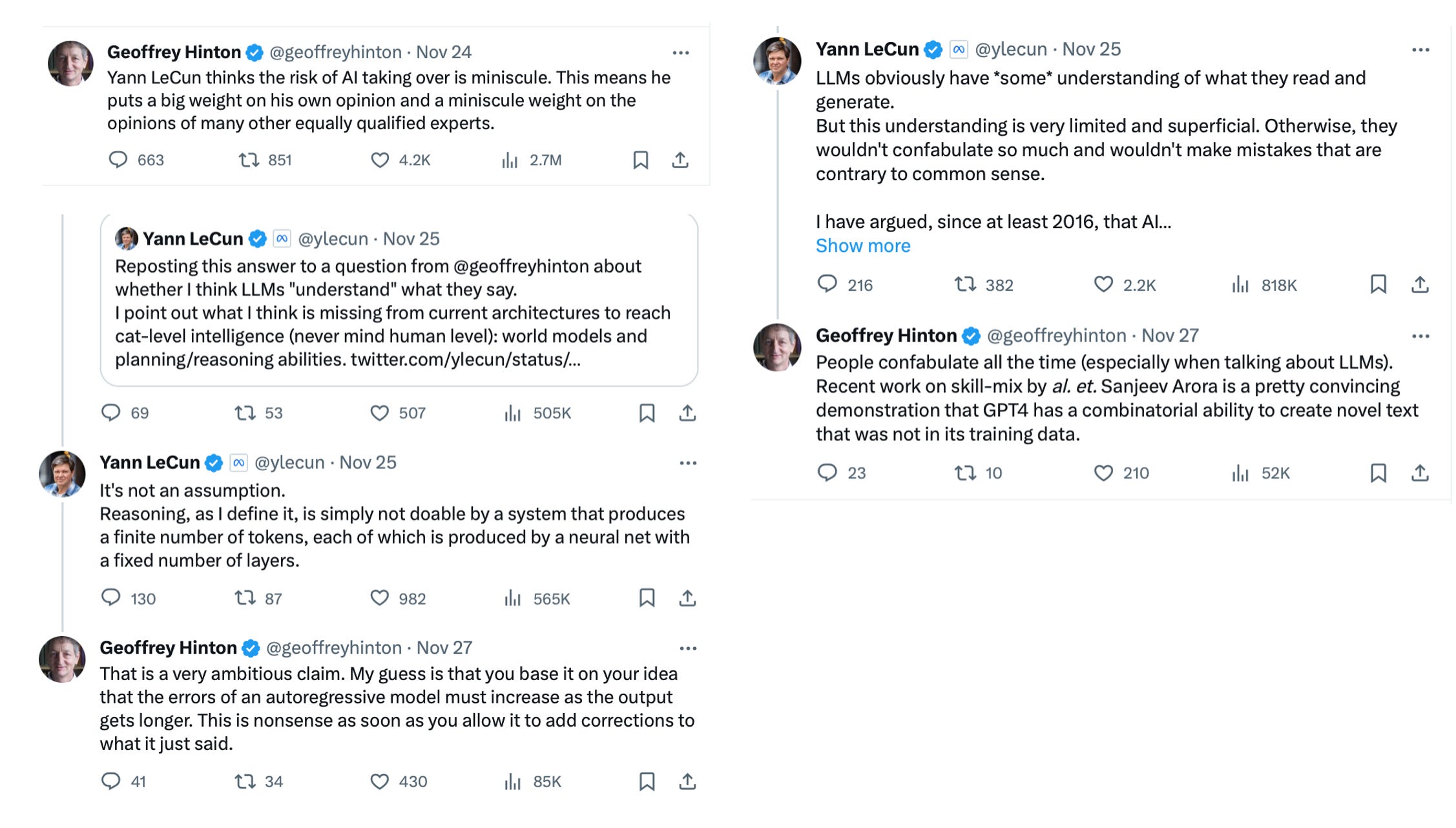 Well, that's actually a fascinating response and added to what your perception of understanding it gets us to perhaps where you were when you left Google in May this year where you had, you saw that this was a new level of whatever you want to call it, not AGI [artificial general intelligence], but something that was enhanced from prior AI. And you basically, in some respects, I wouldn't say sounded any alarms, but you were, you've expressed concern consistently since then that we're kind of in a new phase. We're heading in a new direction with AI. Could you elaborate a bit more about where you were and where your mind was in May and where you think things are headed now?