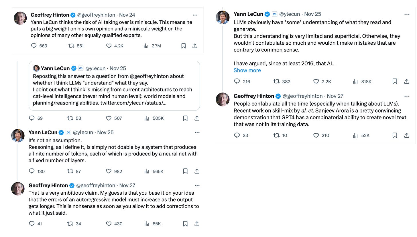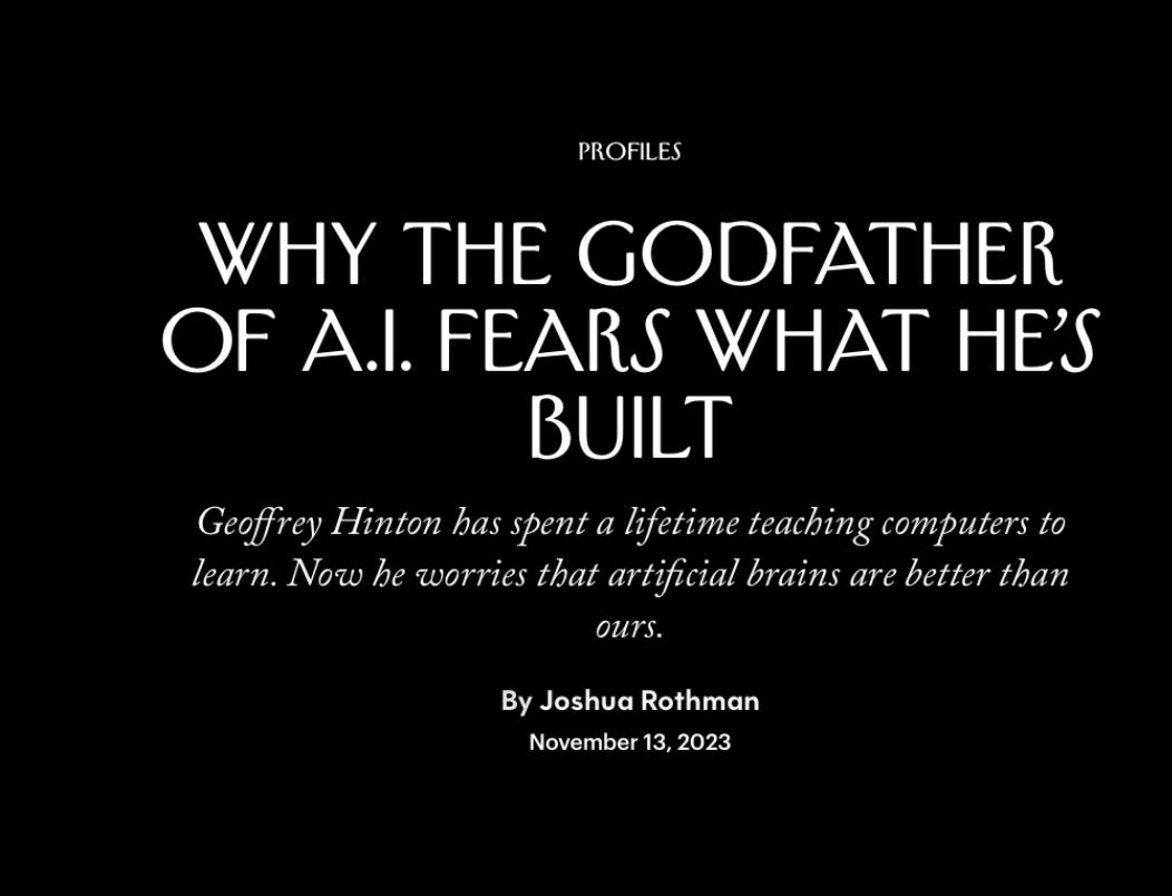 Well, I've noticed the back and forth with you and Yann (LeCun) [see above on X]. I know it's a friendly banter, and you, of course, had a big influence in his career as so many others that are now in the front leadership lines of AI, whether it's Ilya Sutskever at OpenAI, who's certainly been in the news lately with the turmoil there. And I mean actually it seems like all the people that did some training with you are really in the leadership positions at various AI companies and academic groups around the world. And so it says a lot about your influence that's not just as far as deep neural networks. And I guess I wanted to ask you, because you're frequently regarded to as the godfather of AI, and what do you think of that getting called that?