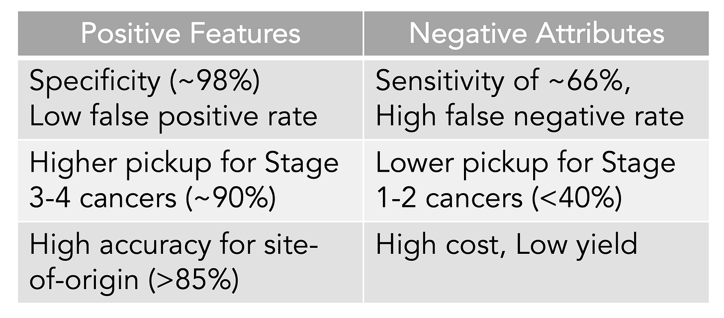 For now, MCEDs are a test for the curious affluent that only carry potential value if positive, and only about half of those will be indicative of an actual cancer diagnosis that was not otherwise apparent. It will be primarily used by the same people who get executive health physicals with all sorts of tests that have not been validated in healthy people, at exorbitant costs.