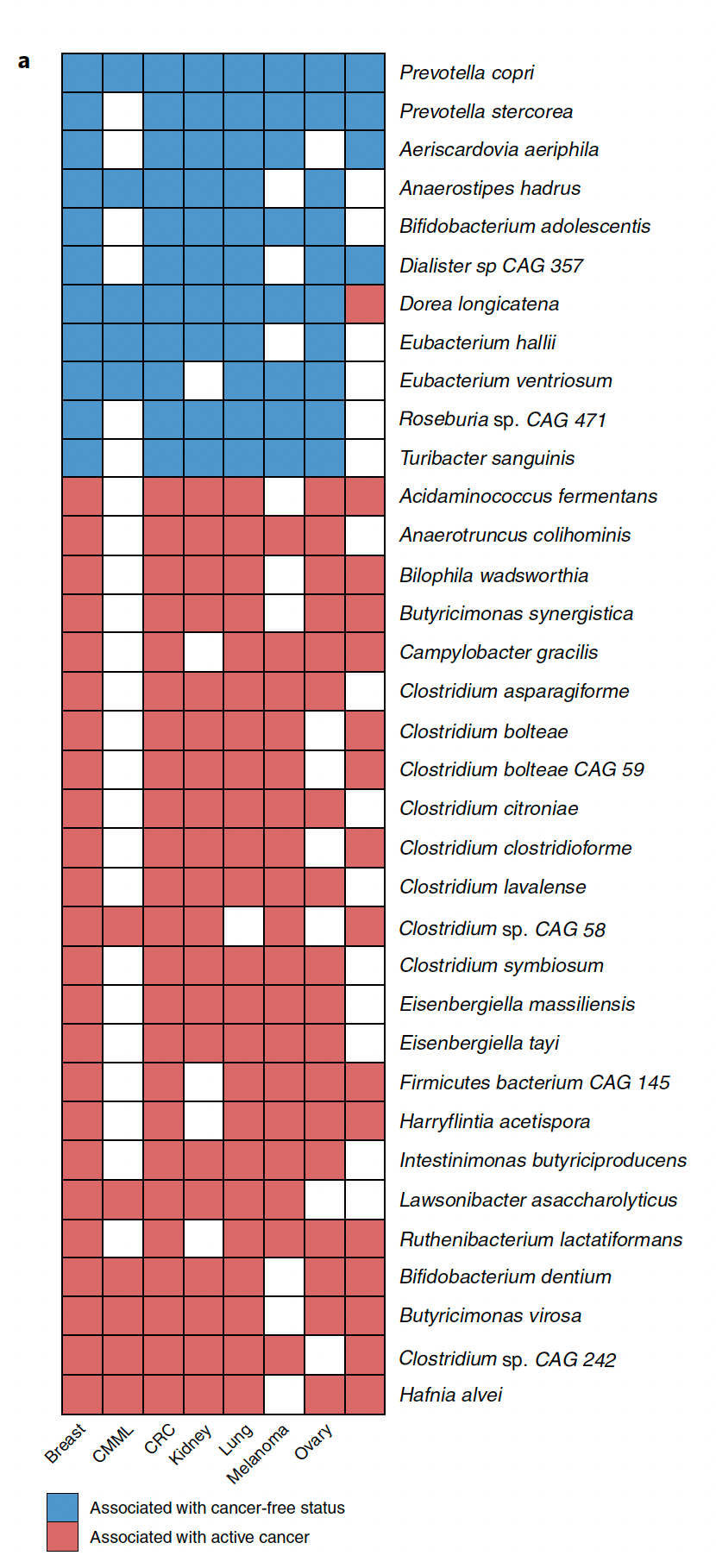 There is also the biomarker of clonal hematopoiesis of indeterminate potential (CHIP) that I just reviewed, linked to heightened risk for a number of cancers including blood, lung and skin (it also predicts cardiovascular risk), that is not available commercially, but ideally should be. It can be a confounder for the MCED tests discussed below, but prospective assessment for partitioning risk should be feasible. There’s also the increased risk of cancer with specific gut microbiome profiles (Figure below) with decreasing diversity and reduced functional redundancy, along with a higher proportion of pathogenic microorganisms, and patterns specific to the different types of cancer, as seen below. This extends potentially to the oral microbiome as well. While the gut microbiome data can be inexpensively obtained, it isn’t yet being used for cancer risk assessment.