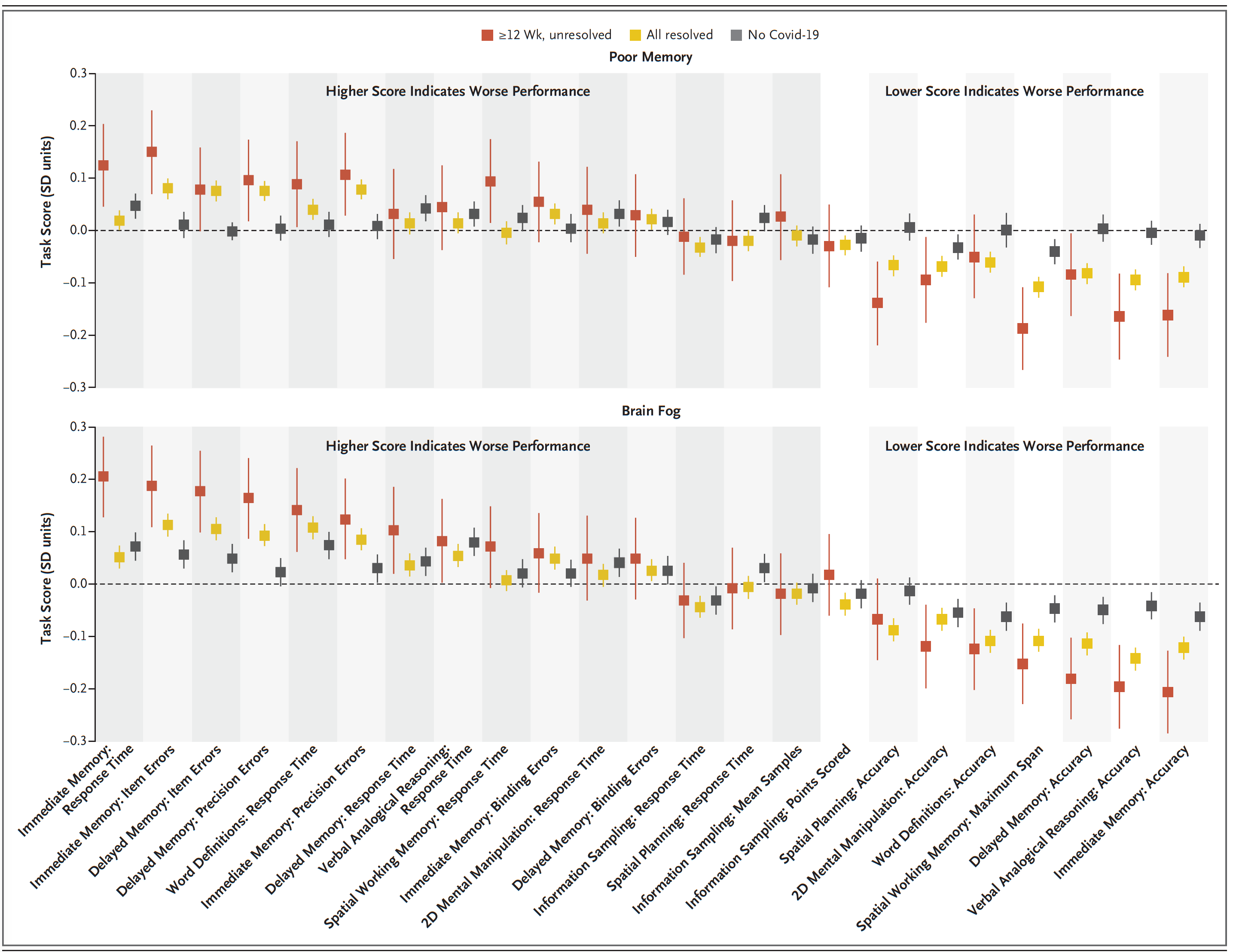 Two new studies published in the New England Journal of Medicine today address the extent and duration of cognitive deficits after Covid in very large cohorts.
