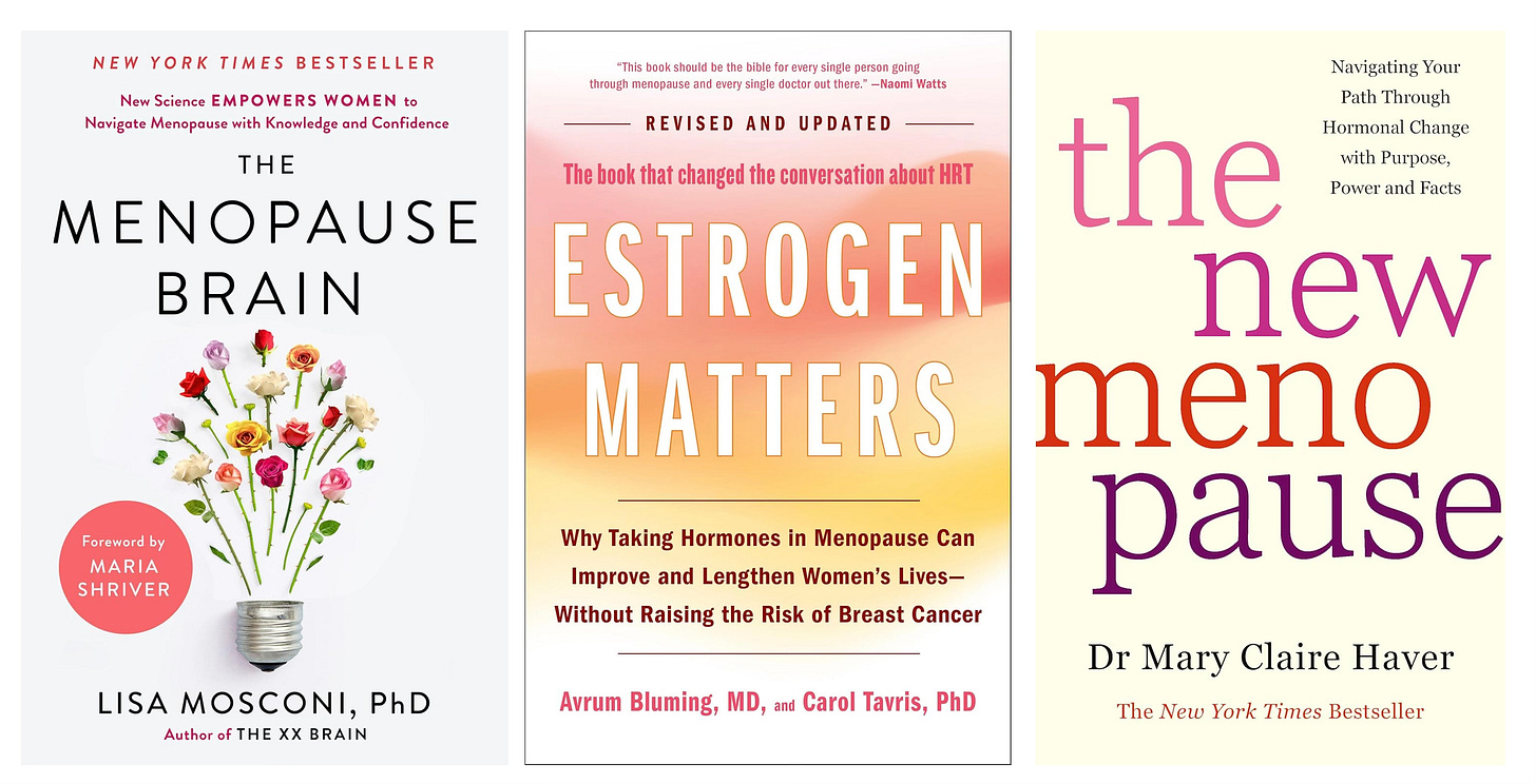 In Dr. Lisa Mosconi’s book The Menopause Brain data for estrogen’s protection of cognitive health, brain function, and reduction of brain fog are summarized. Similarly, in the 2024 revised edition of Estrogen Matters, by Drs. Avrum Bluming and Carol Tavris, the protective effects of estrogen for heart disease and cognitive decline are spotlighted (the subtitle sums it up well). A third book, The New Menopause, by Dr. Mary Claire Haver, reinforces these benefits.