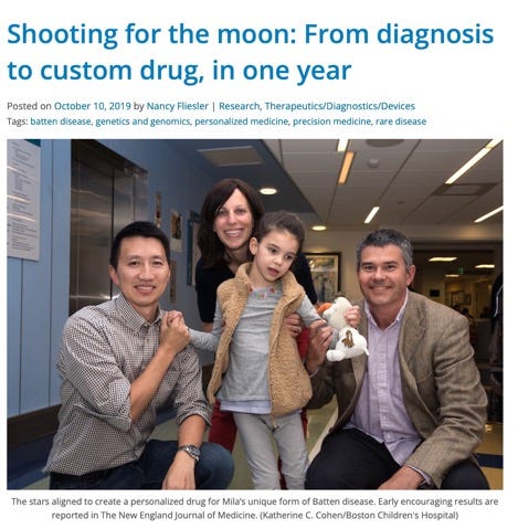 What about the rest? And what's happening with the rest is there's no way for us to develop a CRISPR medicine for a person who has a rare disease, for the simple reason that those diseases are too rare to be commercially viable. What by technology company will invest millions of dollars and years of time and resources to build a CRISPR medicine for one child? Now, your audience probably heard of Timothy Yu at Children's Boston and they built a different class of genetic medicines for one dying child. Her name is Mila. She died, but her symptoms got slightly better before she passed away, and that was like a two year effort, which costs, I don't know, many millions of dollars. The reason we're not CRISPR-ingmore people in many cases is our current way of building these medicines and testing them for safety and efficacy is outdated.