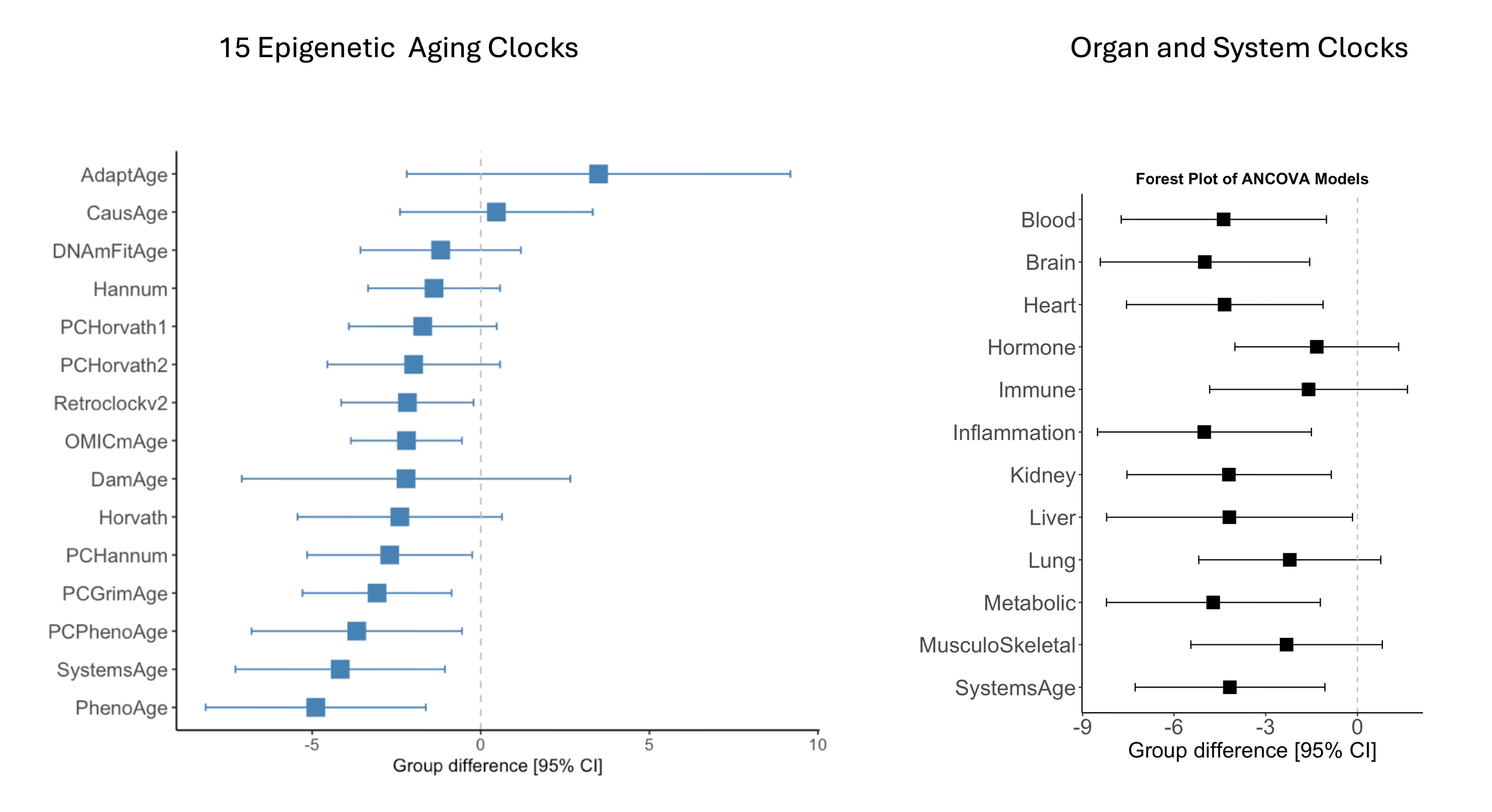 A randomized trial of semaglutide (Ozempic) vs placebo in participants with HIV-associated lipohypertrophy, a pro-inflammatory condition (mean BMI of participants =33 ) was preprint published. The GLP-1 drug slowed epigenetic aging and the pace of aging across 11 organ and system clocks. This likely reflects the potent anti-inflammatory effects of these drugs, both systemically and in the brain. The significant slowing of the pace of brain aging (nearly 5 years) is shown below at right. As far as I know, this is the first drug in a randomized, placebo-controlled trial to demonstrate such epigenetic and organ clock findings. Clearly, we’ll need to see independent replication in healthy individuals who are not overweight or obese, but these results are nonetheless encouraging.
