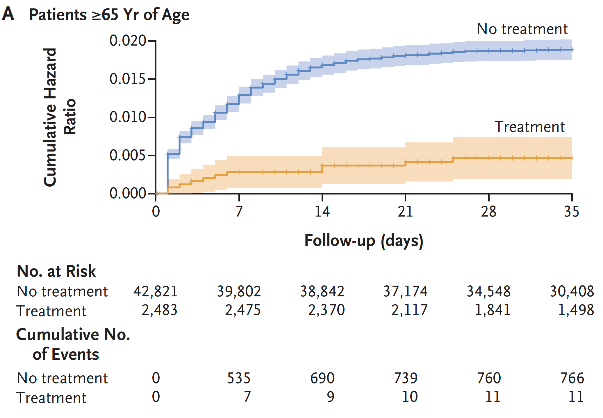 Of particular note is the further reduction of deaths and hospitalizations after the first month of treatment. You can see the curves diverging here, more than they were by 1 month.