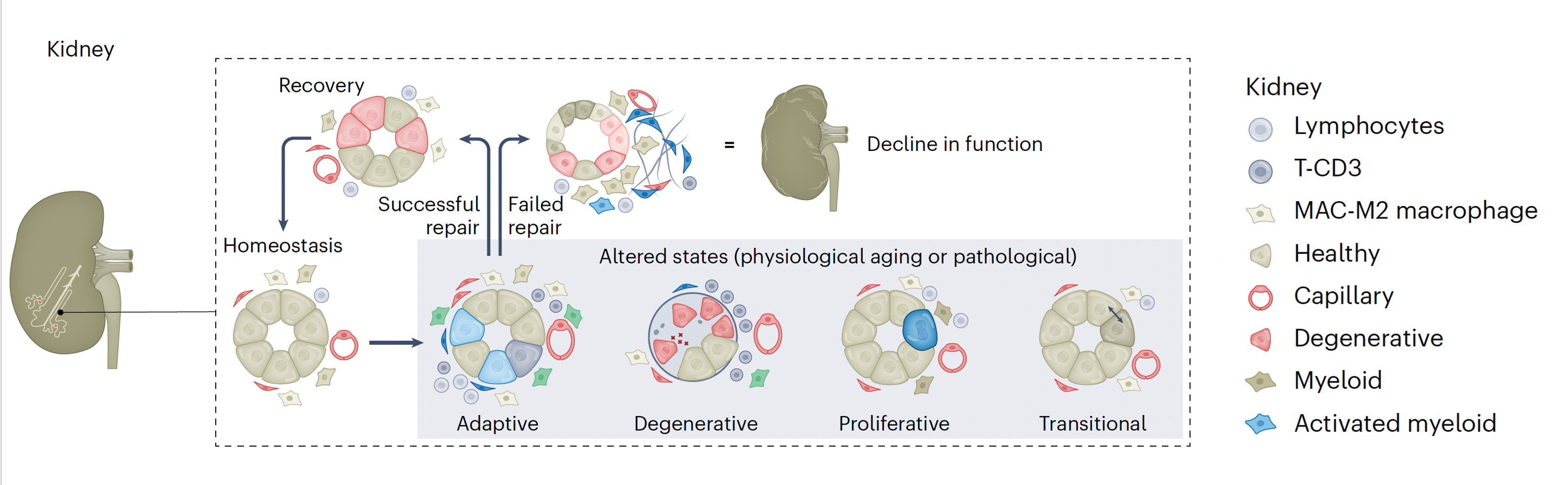 —Features of cells in the end-stage heart failure that recover or what is inducing scarring (fibrosis) after kidney injury, including specifically by kidney stones