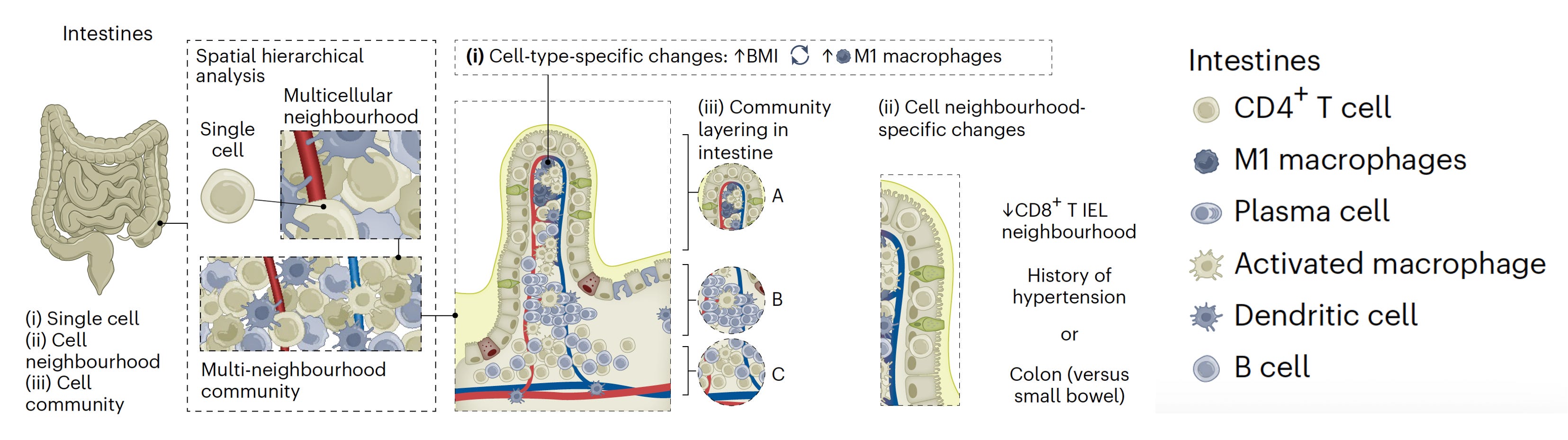 As illustrated in the new HuBMAP for the intestine, this analysis yields a multi-level representation of the various cell types (including rare and previously not known), along with the hierarchical organization and context of the neighborhoods, communities, and functional tissue units. Not shown here is that this architectural digest can go subcellular for high-resolution of intracellular organelles (such as mitochondria).