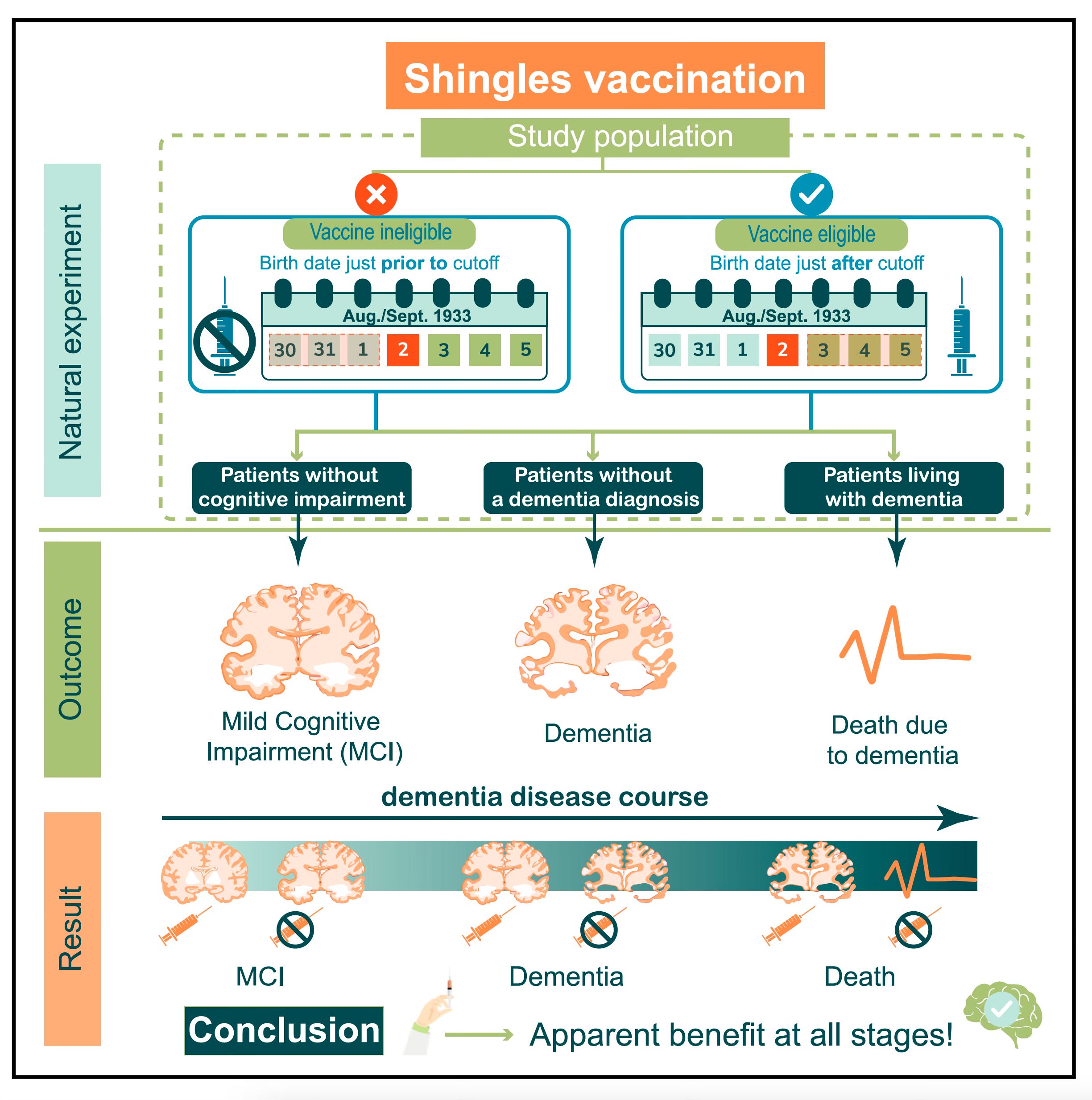 Today in Lancet Neurology, another Shingles vaccine natural experiment was reported that had unique features to help establish cause-and-effect for the vaccine (Zostavax, the live attenuated virus vaccine) and reduction of dementia. To be clear, a natural experiment is an observational study that is based on a naturally occurring situation or policy, such as a country’s policy for vaccine eligibility by birthdate. In many ways, these experiments can be considered better than randomized trials because there are no or minimal selection criteria, they are typically orders of magnitude larger with respect to number of individuals assessed, and they are real world rather than in context of a clinical trial which is subject to the— “Hawthorne effect’”—just being part of a study can have an impact.