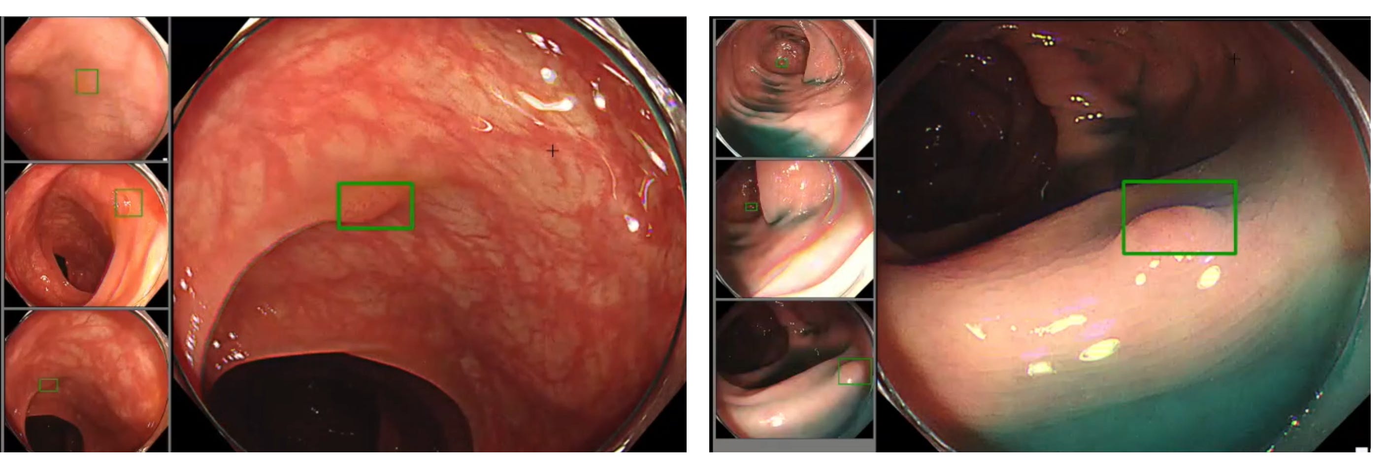 As Dr. Berzin started descending down the colon, the screen displayed the twisting and turning pathway lined with folds and crevices, all rendered in shades of pinkish-orange. "In textbooks, polyps seem easily spotted," said Dr. Berzin, leaning toward the monitor, scrutinizing it with quiet focus. “In reality, they blend into the tissue, elusive as phantoms." Suddenly, a green box outline flashed on the screen, momentarily highlighting a structure within view: a symbol of a possible discovery. But the physician, steady and assured, quickly dispelled the illusion: "The AI thinks there's a polyp here, but that's just a fold." A moment later, the green box had vanished.