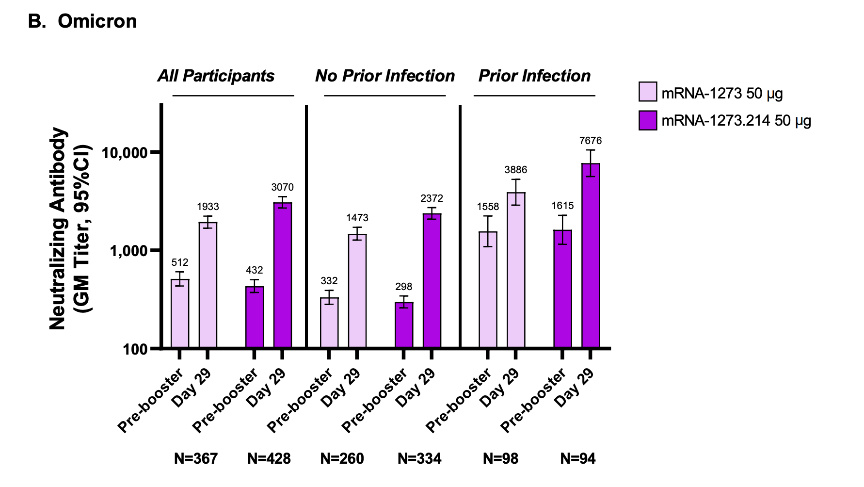 This topic is the thrust of an FDA Advisory Committee meeting this week. Both Moderna and Pfizer/BioNTech have submitted data to the FDA for a bivalent (ancestral + Omicron BA.1) or monovalent (BA.1 only, Pfizer) booster. Moderna also published a preprint on their Omicron booster (data below). While the neutralizing antibody levels were higher for these boosters vs BA.1 (vs the original vaccine), both vaccine programs showed they were 1/3 as high vs BA.4/5.