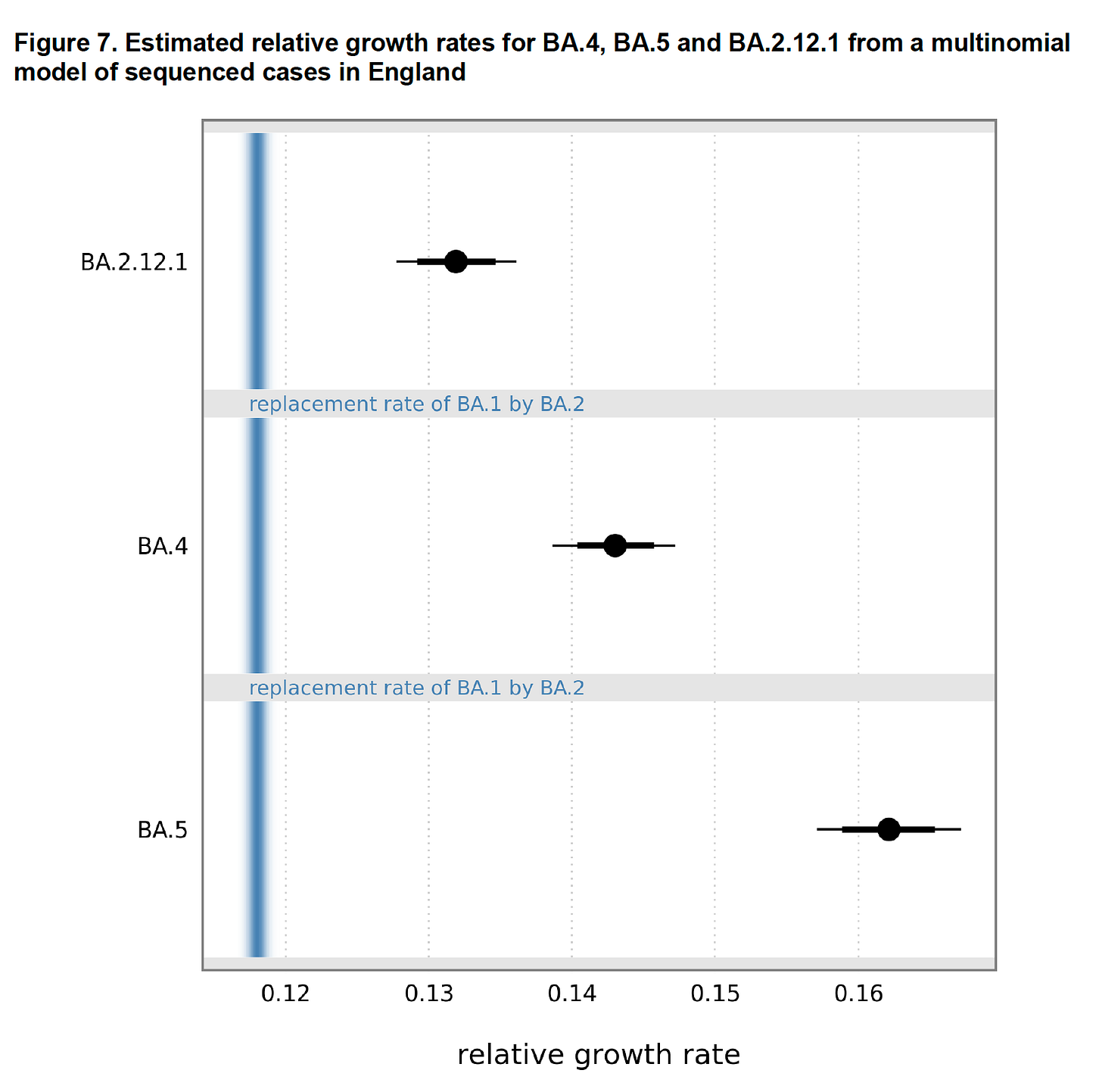 On the topic of fitness, it is noteworthy to look a the growth advantage of BA.5 relative to BA.4 and BA.2.12.1, as recently analyzed by the UKHSA
