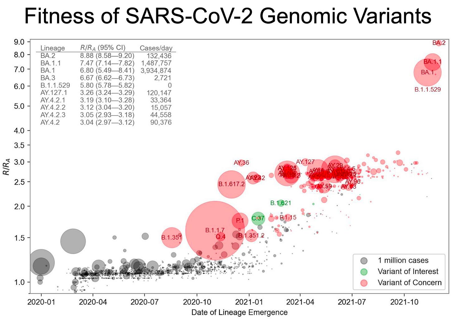 An important feature of the variant is its fitness, which is the composite of lineage growth, basic reproduction number, extent of immune-evasion and generation time. From an analysis of 6.4 million SARS-CoV-2 sequences, here is the fitness plot, and note that BA.2 is at the upper right, whereas BA.5 would be well off the chart for maximal fitness.