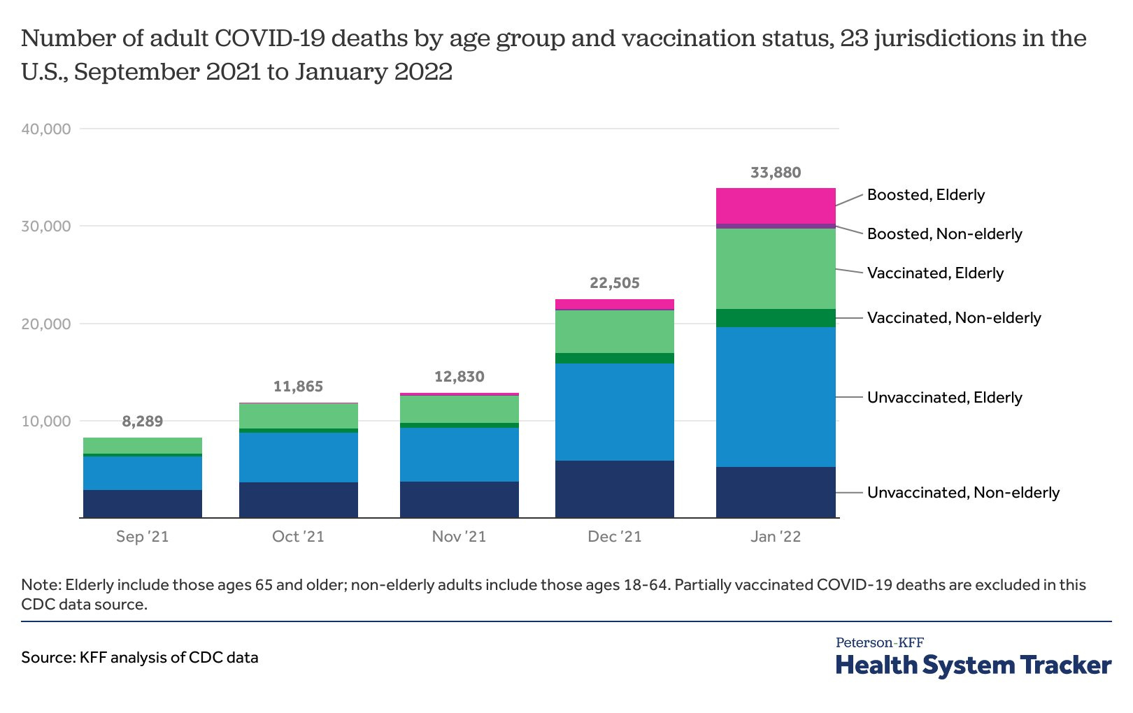 With that handwriting on the wall, how could our government legislators turn their backs on funding critical initiatives to get us through the pandemic? This is frankly absurd, staring at millions of more Americans to get infected that is happening right now (no less the Biden administration has projected 100 million this fall/early winter) that will translate to an unknown number of more hospitalizations and deaths. Ironically, the same administration, via the CDC, is downplaying the risk of our current Covid wave as reviewed above. And this is all happening when we just crossed the 1 million confirmed American deaths (far more via excess mortality), with at least a few hundred thousand of these preventable with vaccines and boosters. You just have to look at these Figures from KFF to see that even people with boosters were succumbing at the start of the Omicron wave (January 2022).