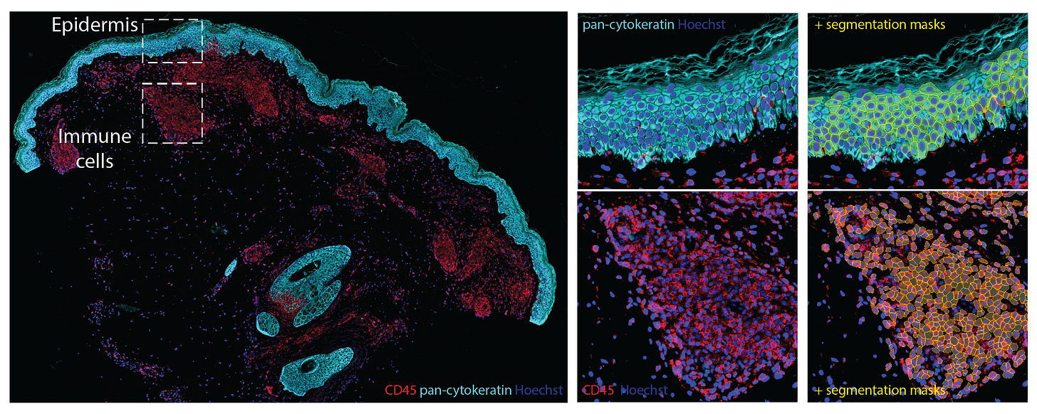 Segmentation of keratinocytes and immune cells, which is performed with the help of machine learning, is shown below.