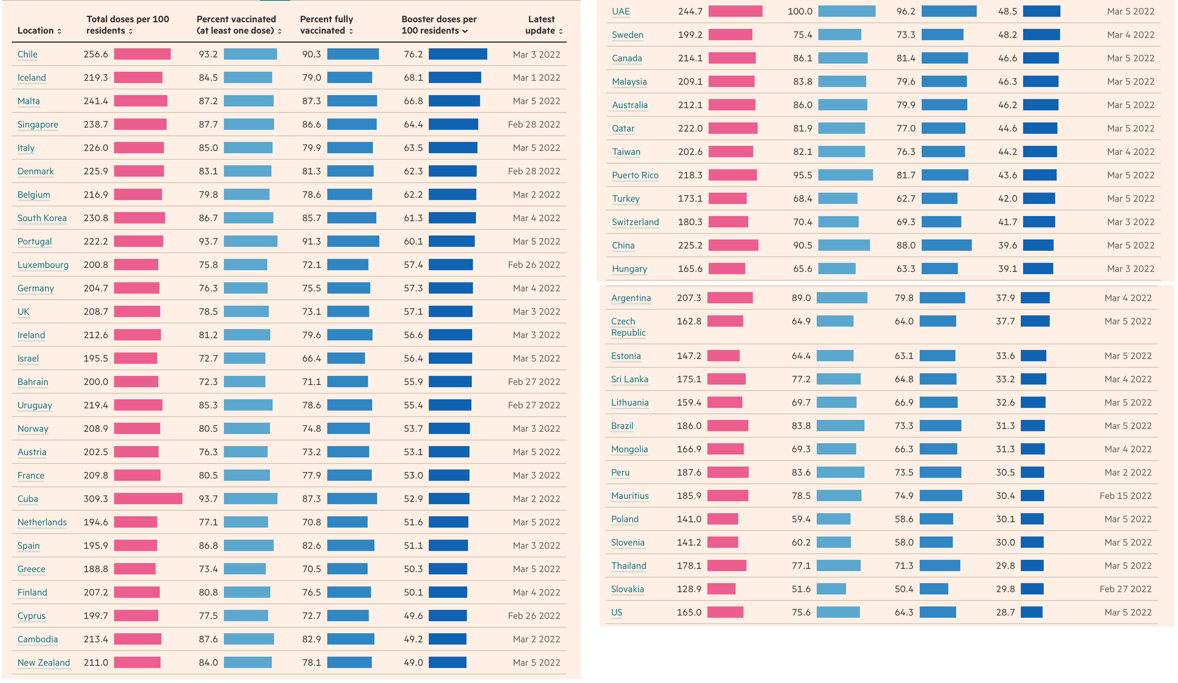 Notably, the United States ranks 55th in the world for booster shots and 67th for 2-shot vaccinated. It is remarkable that we are at the lowest rate of primary vaccinations and booster uptake since the beginning of their respective campaigns.