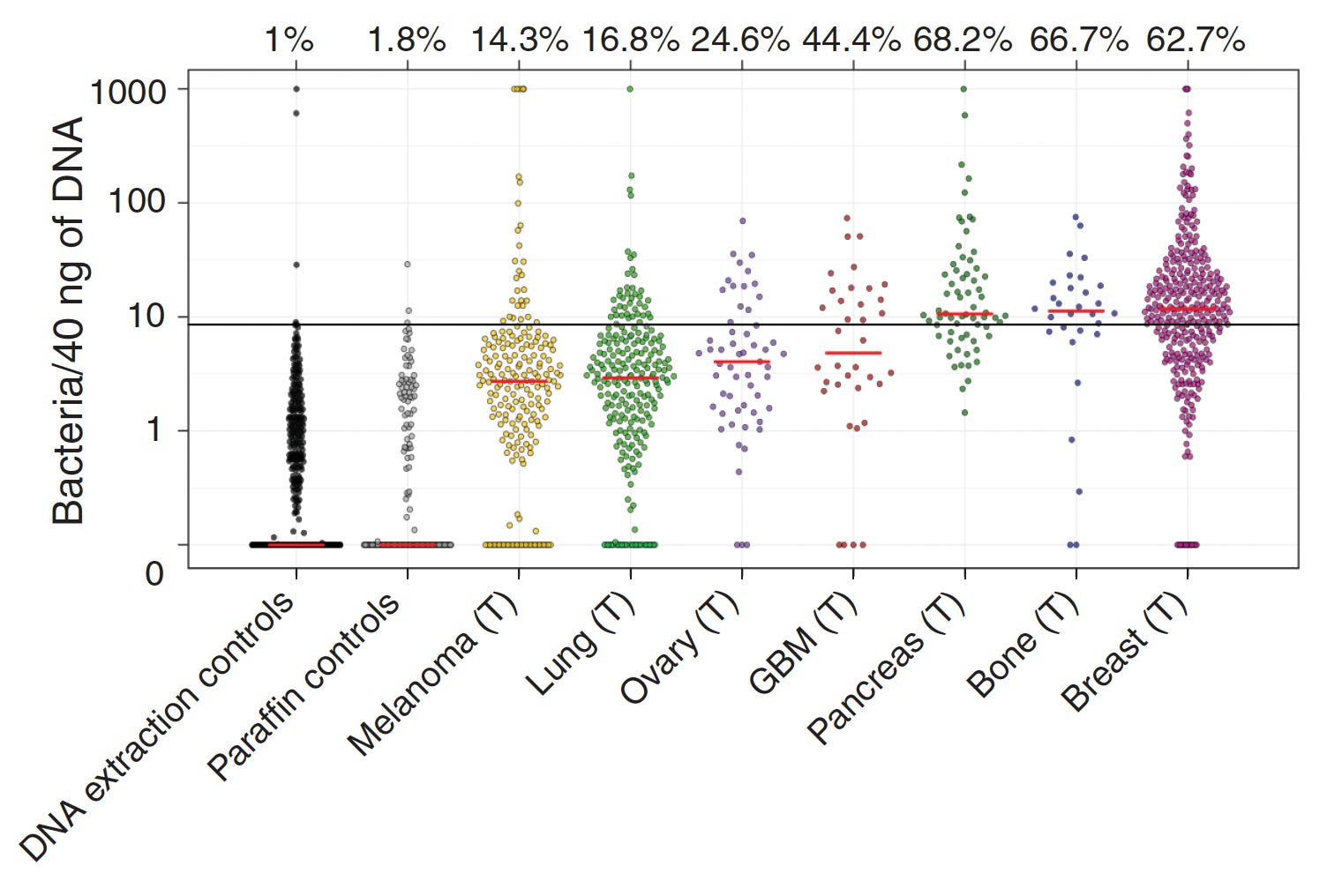 While there was considerable debate about the extent and localization of bacterial presence in cancer, a seminal study published in Science in 2020 changed that. A comprehensive assessment across 7 cancer types, from over 1500 tumor samples, showed the presence of bacteria, mainly inside cancer and immune cells. Of the solid tumors assessed, breast, bone and pancreas cancer had the highest estimates of bacterial load.