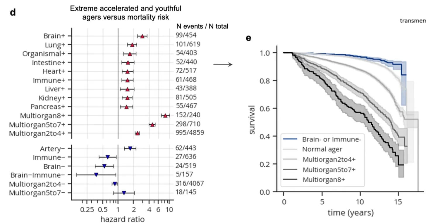Ultimately, a full immunome can be “panoramic,” BCR and TCR sequencing Integrated with other immune system components (autoantibodies, virus and pathogen exposure, flow cytometry, T cell functional assays, interferon, HLA typing, etc). For autoimmune conditions, this (BCR and TCR sequencing) could add to current rheumatological panels that include rheumatoid factor, double-stranded DNA, anti-nuclear antibody, anti-cyclic citrullinated peptide antibodies, and others. Combined with this would be proteomic organ clocks, such as what I’ve previously reviewed for the immune system aging clock, prominently linked with healthspan and life expectancy. (Figure below is from that prior post.)