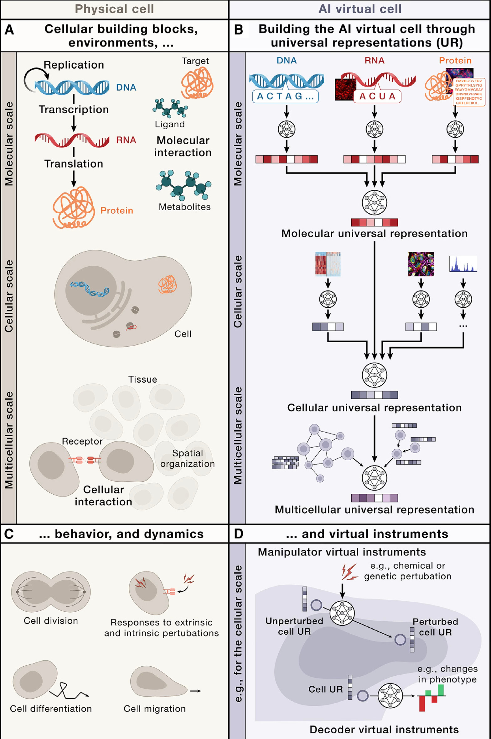 And what is great about AI, and so I think this is a bit like a history of AI in short is the ability to predict the last years, the ability to generate, we can generate new hypothesis, we can generate modalities that we are missing. We can potentially generate certain cellular state, molecular state have a certain property, but I think what's really coming is this ability to reason. So we see this in those very large language models, the ability to reason about a hypothesis, how we can test it. So this is what those instruments ultimately need to do. So we need to be able to simulate the change of a perturbation on a cellular phenotype. So on the internal representation, the universal representation of a cell state, we need to simulate the fact the mutation has downstream and how this would propagate in our representations upstream. And we need to build many different type of virtual instruments that allow us to basically design and build all those capabilities that ultimately the AI virtual cell needs to possess that will then allow us to reason, to generate hypothesis, to basically predict the next experiment to conduct to predict the outcome of a perturbation experiment to in silico design, cellular states, molecular states, things like that. And this is why we make the separation between internal representation as well as those instruments that operate on those representations.