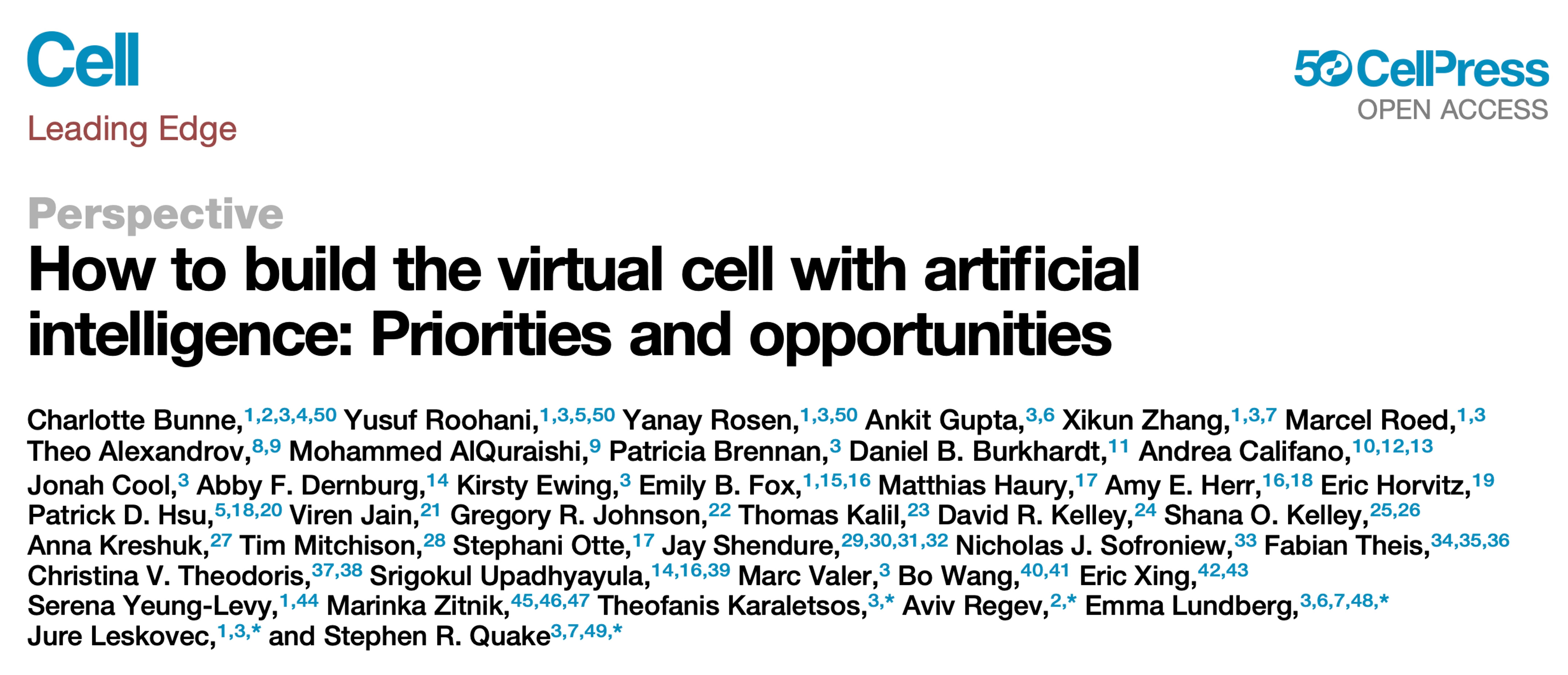Yeah. So you wrote this article that Charlotte, the first author, and Steve, one of the senior authors, appeared in Cell in December and it just grabbed me, “How to build the virtual cell with artificial intelligence: Priorities and opportunities.” It's the holy grail of biology. We're in this era of digital biology and as you point out in the paper, it's a convergence of what's happening in AI, which is just moving at a velocity that's just so extraordinary and what's happening in biology. So maybe we can start off by, you had some 42 authors that I assume they congregated for a conference or something or how did you get 42 people to agree to the words in this paper?