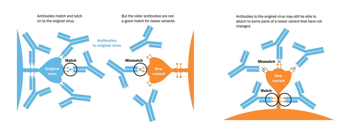 But there’s a concern that it’s not so easy to extrapolate mouse to human for SARS-CoV-2, a virus that’s quite different than influenza. A substantial proportion of people have had 3 or 4 shots of the original vaccine, so there’s the potential for imprinting—that is a preferential revving up of the immune response to what a person was originally exposed to, that is the version of SARS-CoV-2 (also known as original antigenic sin, a poor term since it’s not really a sin, it’s our immune system at work). That concept was just nicely reviewed with an explanatory graphic below.