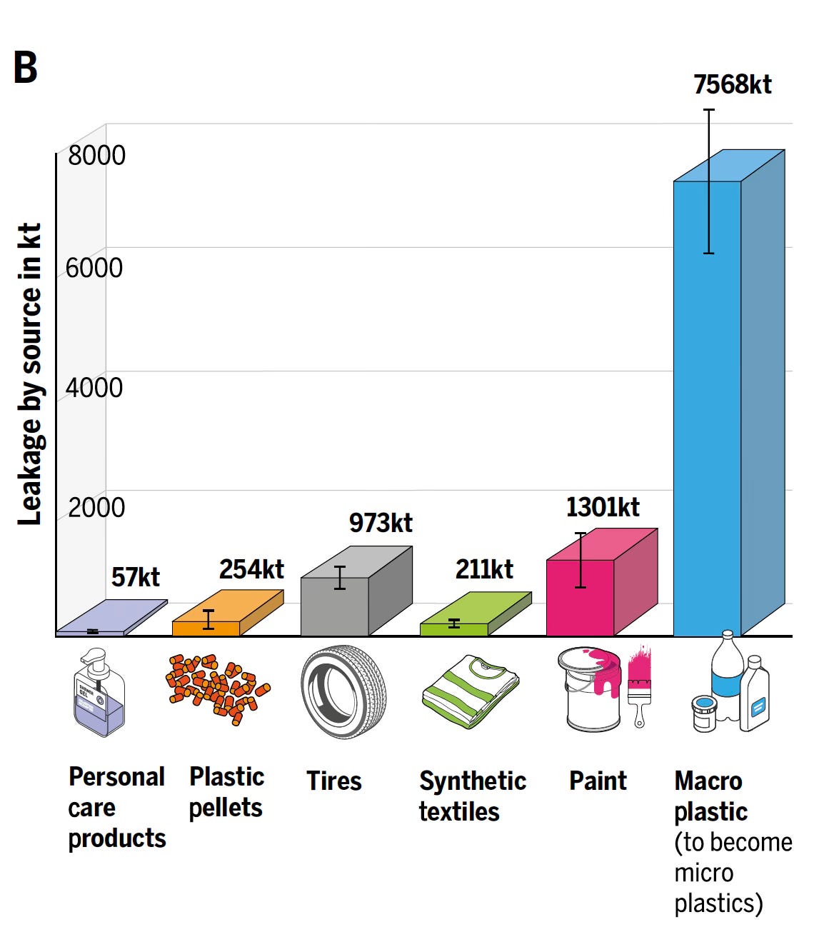 The main sources of MNPs, and roughly quantified, are shown below. Besides their effects on human health, the detrimental impact to the environment for the atmosphere, land, soil, waterways, avian and marine life, and more cannot be over-emphasized.