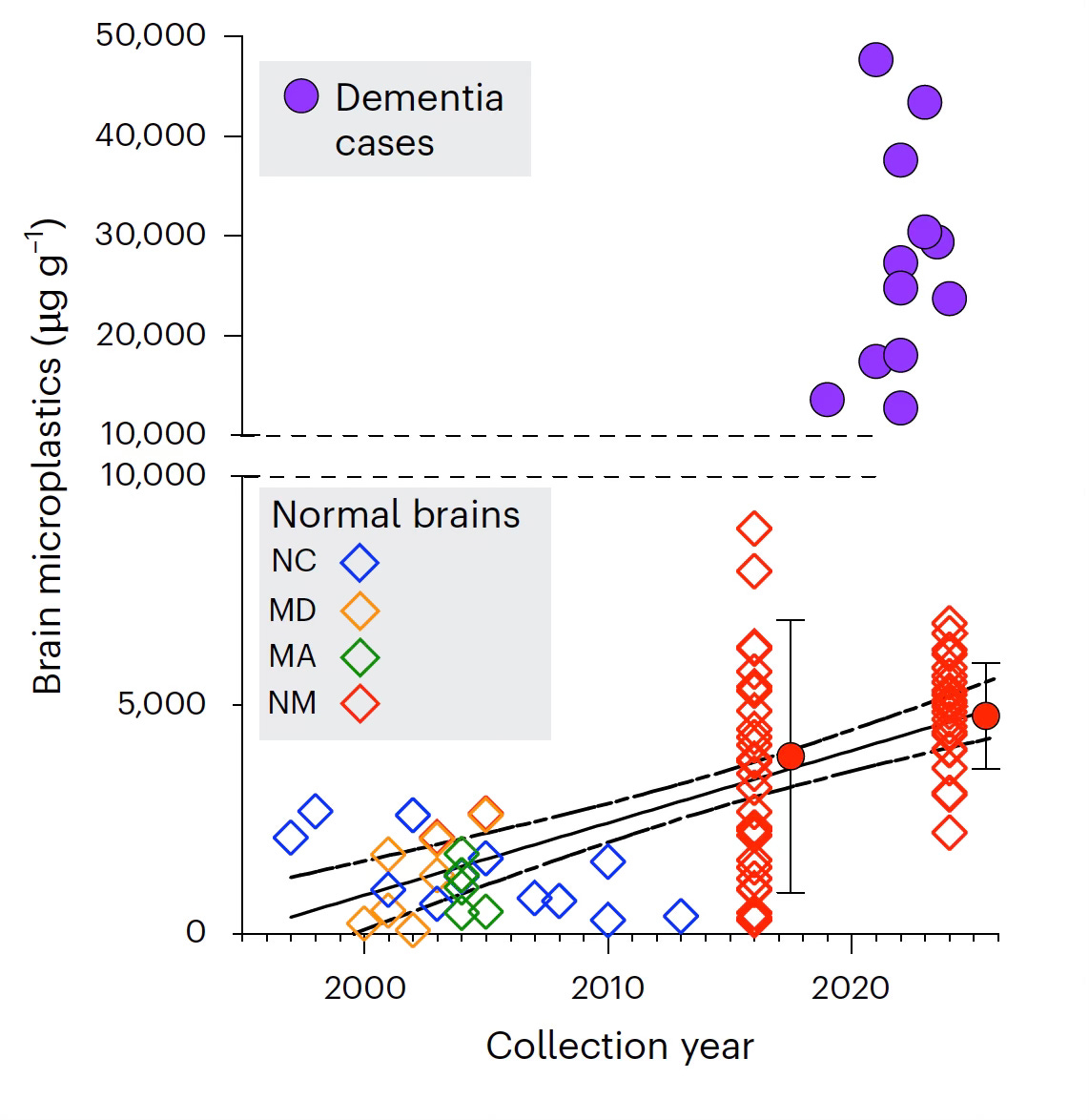 There was no apparent effect of age or sex on the brain MNP concentration. For the 3 organ assessment over 8-years, there was about a 50% increase in MNP concentration. As mentioned at the top, cause-and-effect was not established. As pointed out in the paper “Atrophy of brain tissue, impaired blood–brain barrier integrity and poor clearance mechanisms are hallmarks of dementia and would be anticipated to increase MNP concentrations; thus, no causality is assumed from these findings.” Nevertheless, they are flanked by so much evidence of aggressive inflammation and adverse outcomes in other organ tissue, such as the cardiovascular and male reproductive systems.