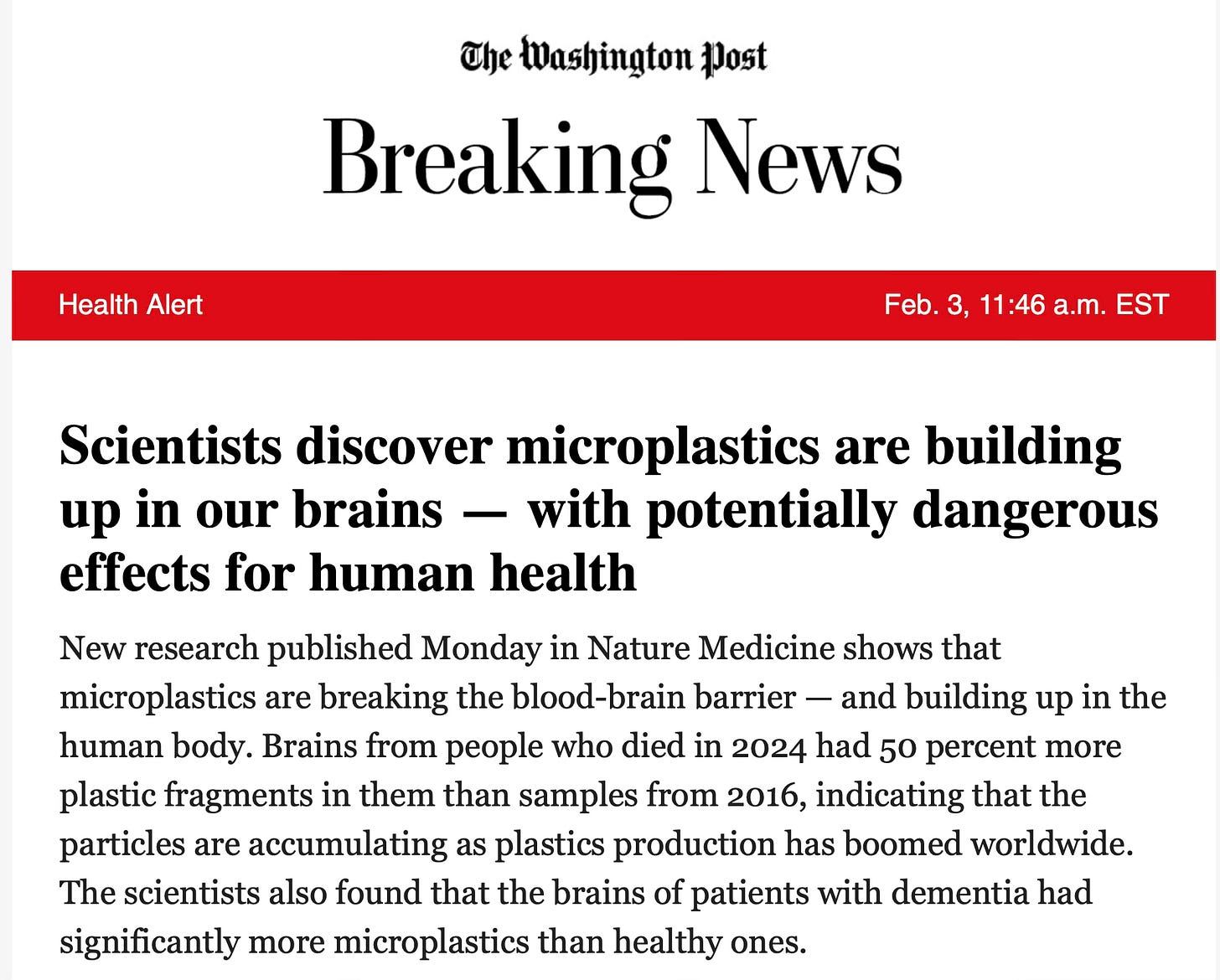 This issue of Ground Truths sums ups a worrisome new report on brain accumulation of microplastics, increasing over time assessed, with much higher levels in people with dementia, including Alzheimer’s disease. It comes on top of a new study in the experimental model showing microplastics impair brain blood vessel flow and induce blood clots. While these reports do not establish cause-and-effect, they add to a growing body of deeply concerning evidence on the toxic effects of these pervasive substances for our health.