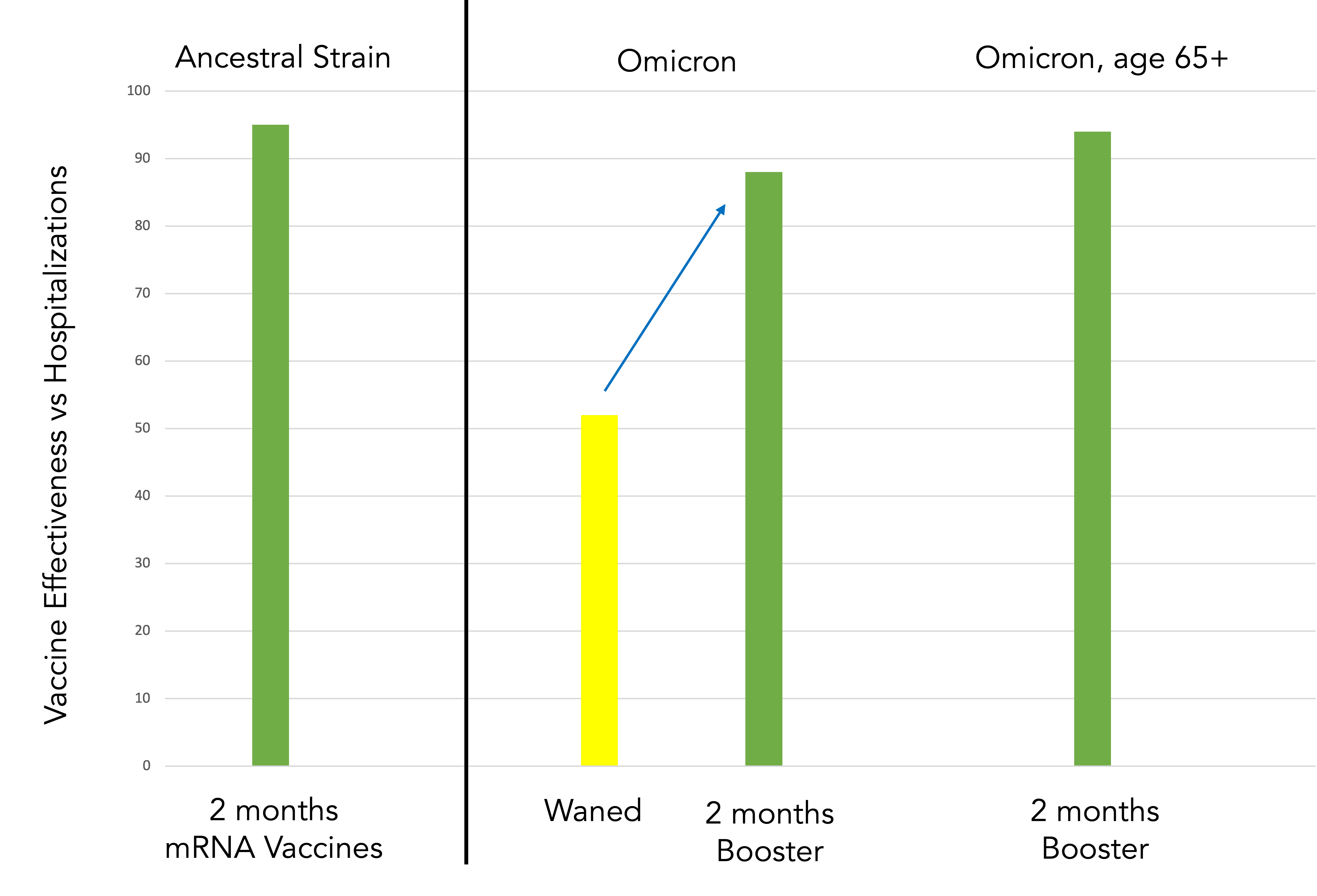 ✓ A third shot vaccine provides equivalent very high protection vs Omicron as 2-shots did against the original strain vs hospitalizations and severe disease