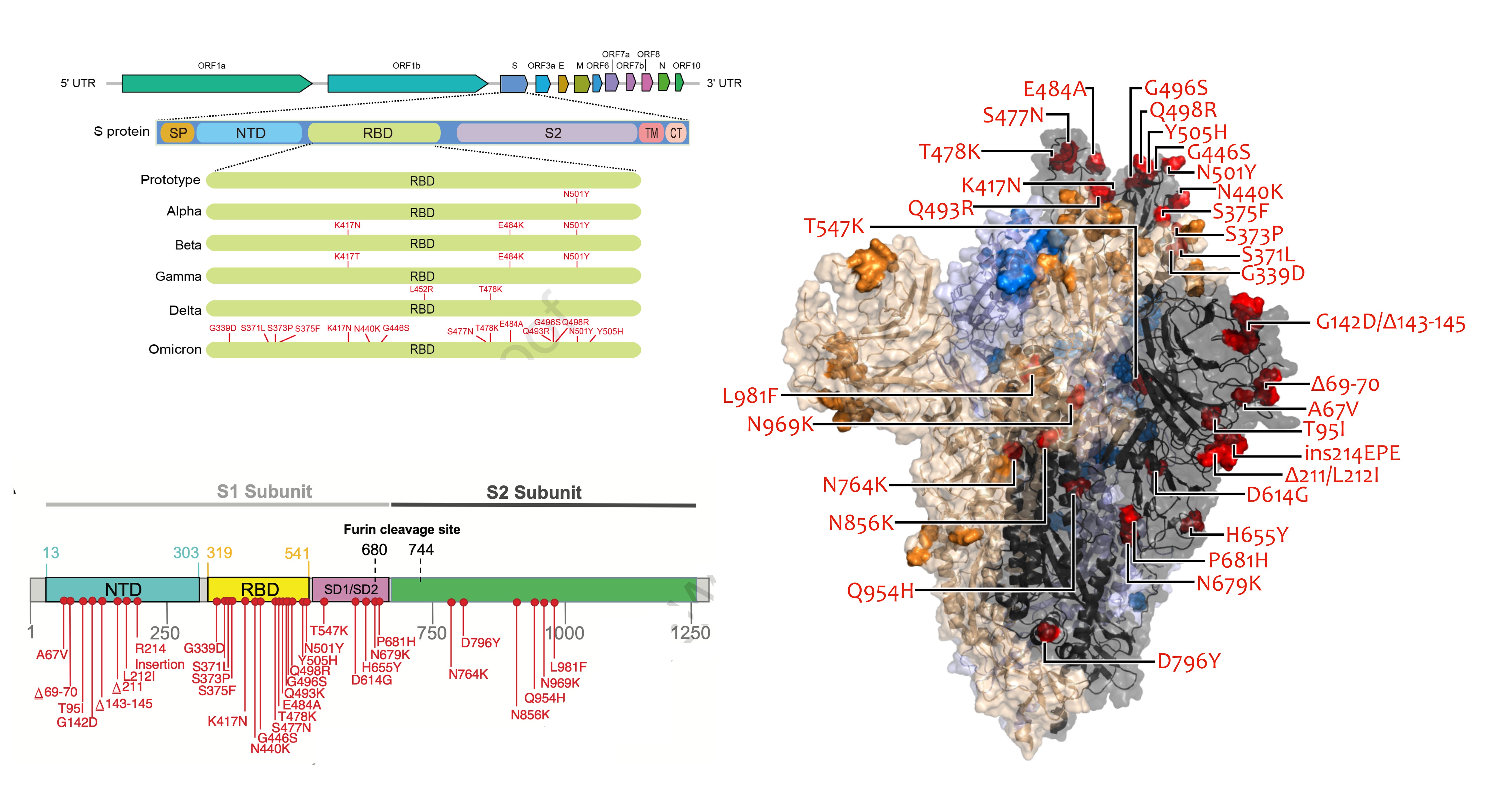 But to continue with the lucky streak, the original vaccines were targeted to the Wuhan ancestral strain’s spike protein from 2019. The spike protein, no less the rest of the original SARS-CoV-2 structure, is almost unrecognizable now in the form of the Omicron strain (see antigenic drift from prior post). While there’s naturally been much focus on the extraordinary number of mutations in the receptor binding domain and the rest of the spike protein, over 50 mutations are spread out throughout Omicron, making the prior major variants of concern (Alpha, Beta, Gamma, Delta) lightweights with respect to changes in structure that are not just linear or uni-dimensional. Each mutation can interact with others (epistasis); any mutation or combination of mutations has the potential to change the 3D structure of the virus. In this sense, Omicron is an overwhelming reboot of the ancestral strain.