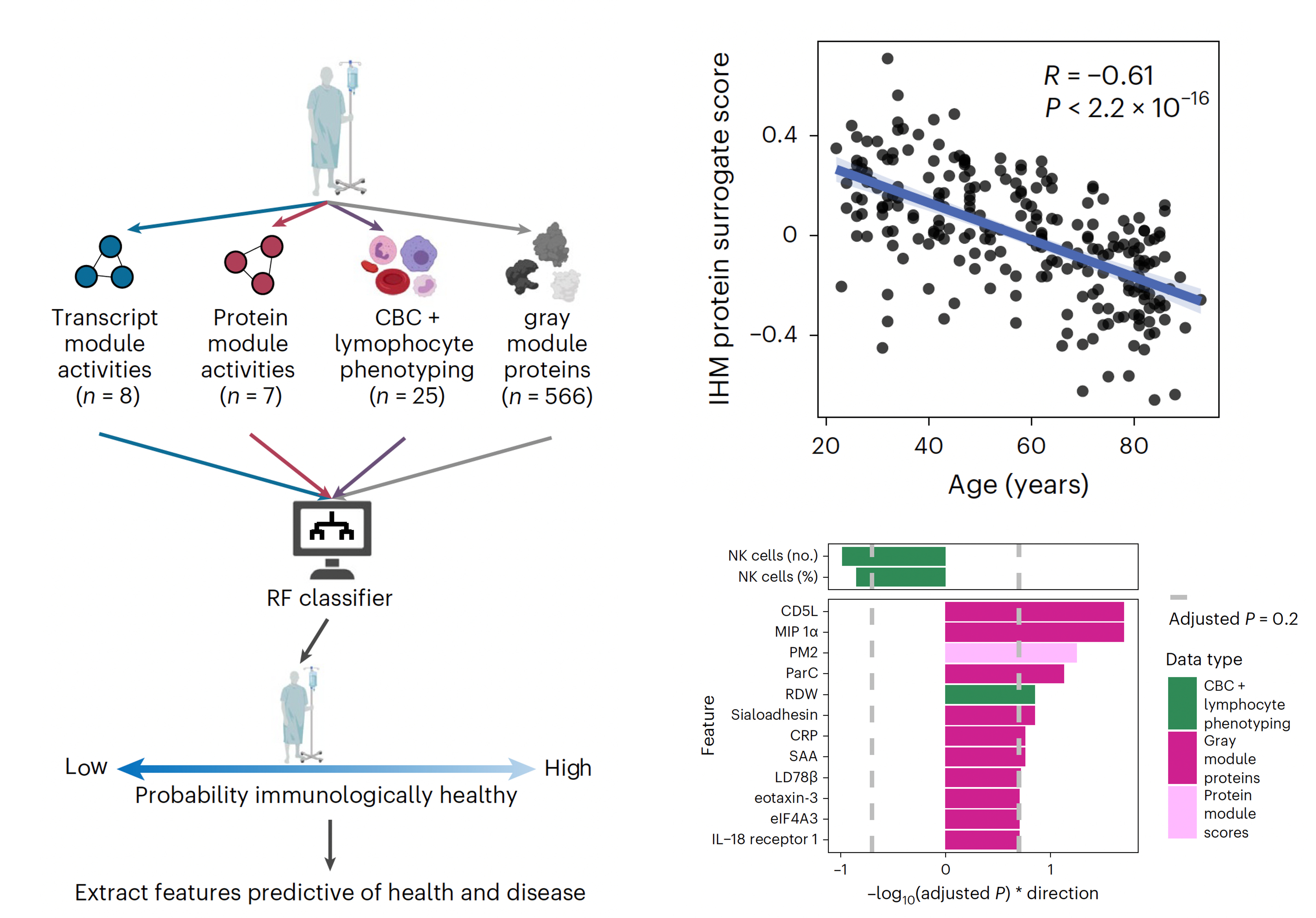 The IHM was assessed in 10 independent datasets and differentiated healthy vs immunologic or inflammatory diseases, with discrimination well beyond inflammatory markers such as C-reactive protein and interleukin-6. It also predicted age among healthy individuals, and the age-related response to vaccines. The IHM’s predictive capacity was not affected by removal of CXCL9 (iAge) but it was concordant with IMM-AGE.